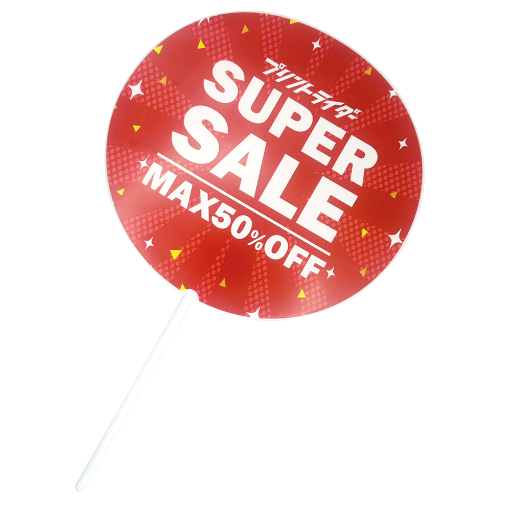 「しっかり扇げる」実用性と、イベントのアイコンとしての存在感を兼ね備えた柄付き丸うちわは、会場の空気を一段と盛り上げる王道アイテムです。
